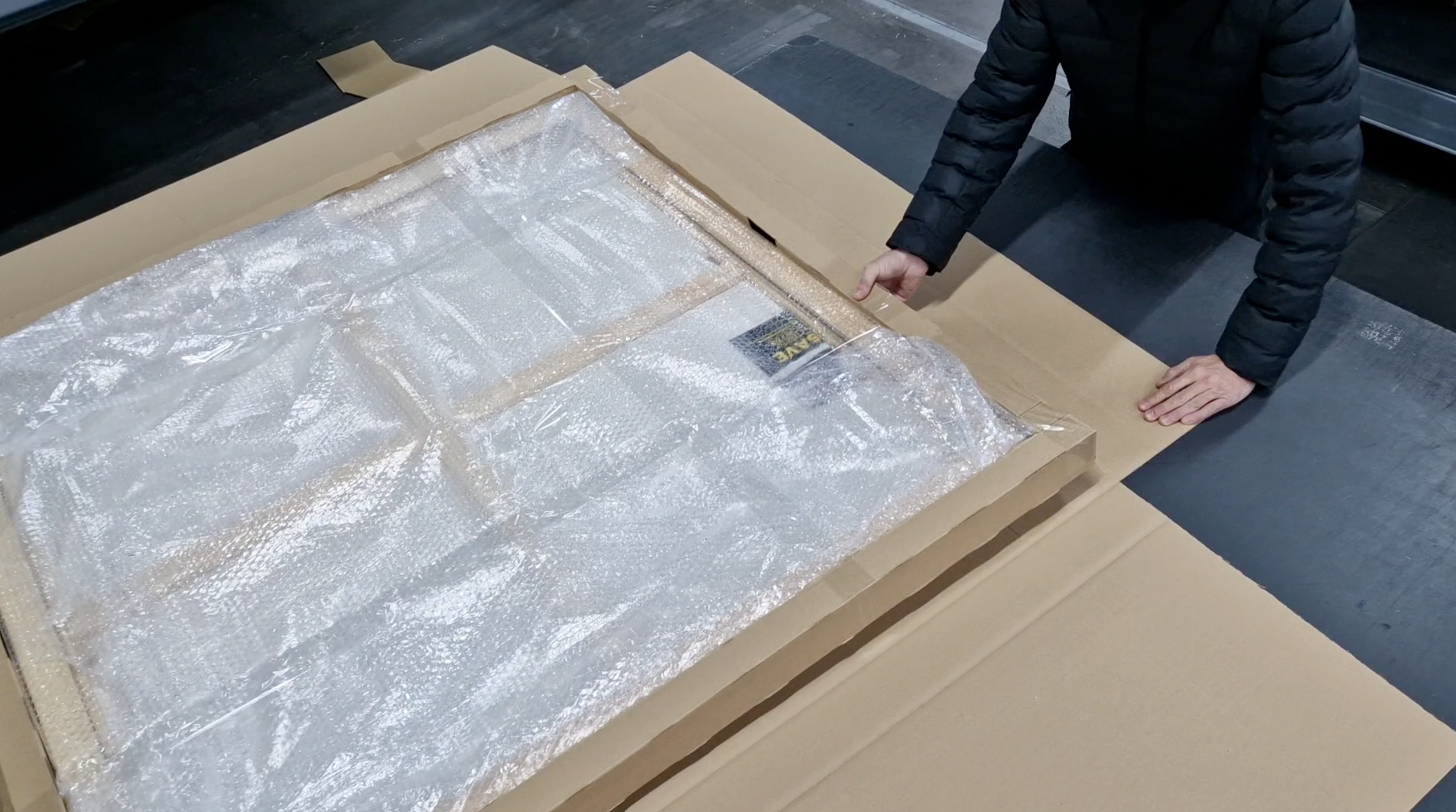 Your artwork is carefully packaged in our custom-designed packaging to ensure safe transit and minimize the risk of damage upon delivery (see video).